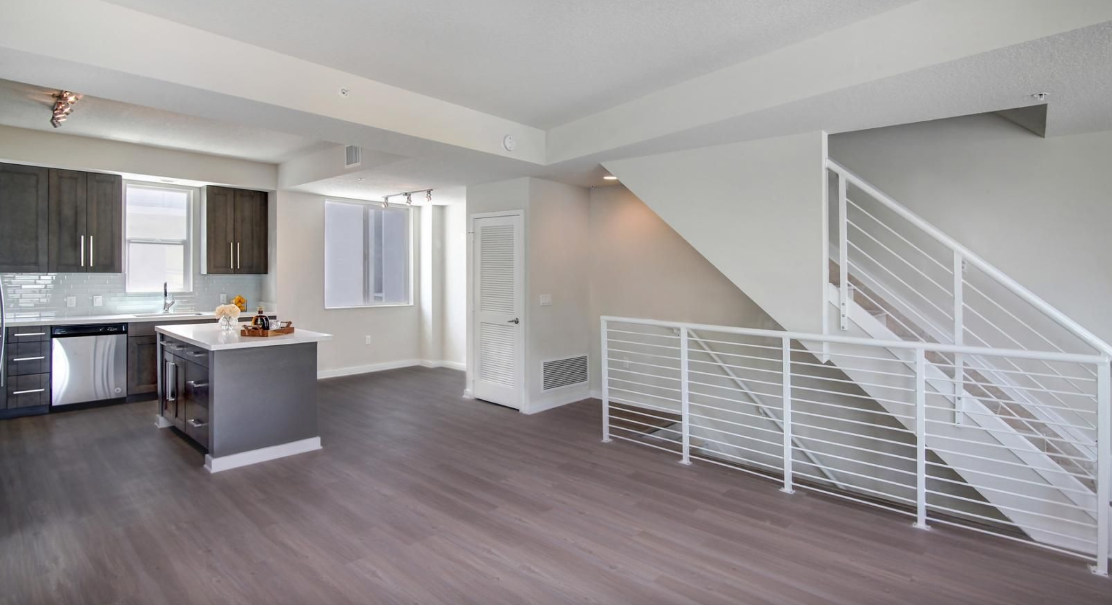 Spacious, loft-style living rooms in select apartments