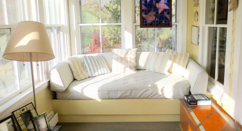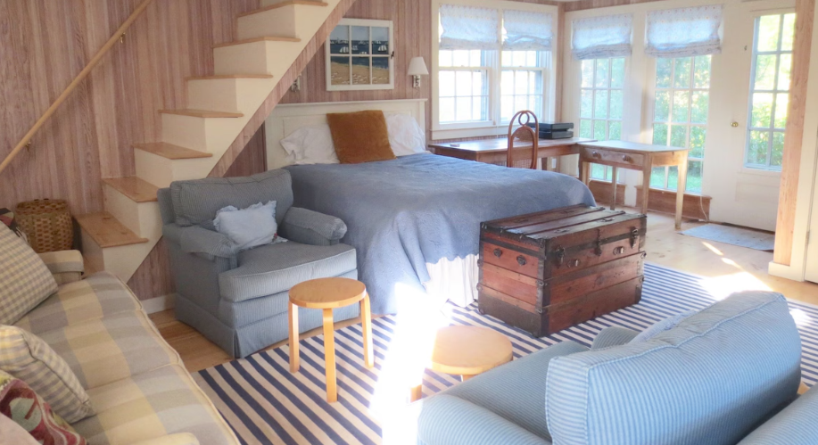 Main house has a large kitchen, laundry room, living room, gorgeous sun room with a flat screen TV- and a daybed perfect for reading. Spacious master bedroom with tub shower and Queen bed. Guest bedroom (King) with bathroom with a tub. Outdoor shower.