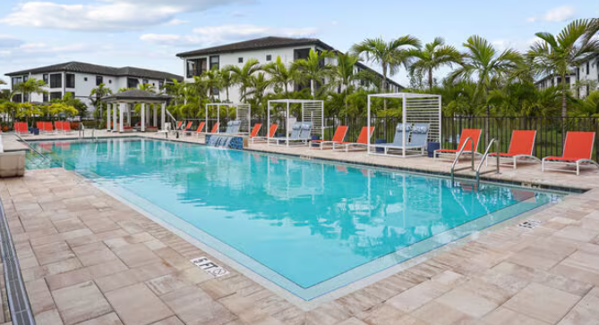 The Edge is a brand-new luxury apartment community located in Fort Myers, Florida, near I-75, 6 Mile Cypress Parkway, and Colonial Blvd. The Edge is conveniently located near Walmart, Publix, Chick-Fil-A, Whole Foods, Texas Roadhouse, Buffalo Wild Wing, and The Forum. The community offers one, two and three-bedroom apartment homes with stately granite counter tops, fully appointed interiors and WiFi included in all apartment homes; along with state of the art amenities that include a resort-style pool, fully equipped fitness facility with a yoga studio and virtual fitness training, outdoor lounge with cabanas, billiards, fire pit and grills, bike share program, electric car charging stations, bark park and pet grooming facility.